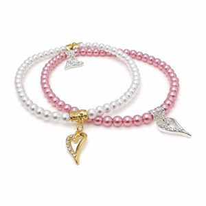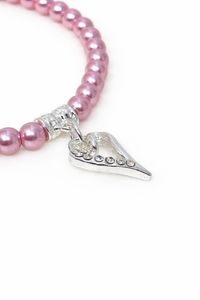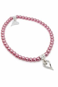 Armbånd med små lyserosa perler sølvfarget hjerte med stener
