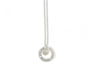Langt halssmykke med ring med teksten "every moment matters" og perle i midten Lengde på kjede ca. 90 cm + kjedefor lenger 6 cm Størrelse på ring ca. 3 cm